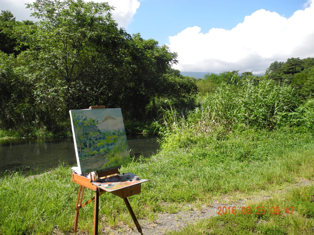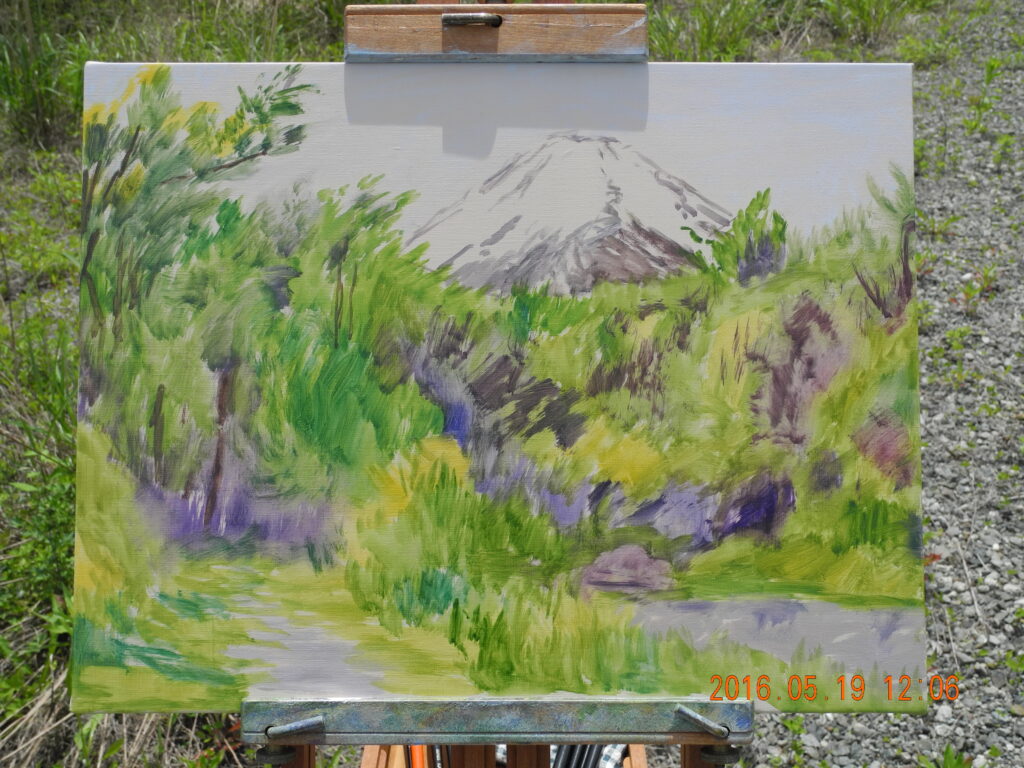 東伊豆でイーゼル画を始め、御殿場、山中湖と富士山も200点を超え、スキルの蓄積は多大で、どんなモチーフ、どんな状況も、私にはこれは描けないかもしれない、という怖れがなくなった。三昧の境地で、絵を描くことは楽しいよ。