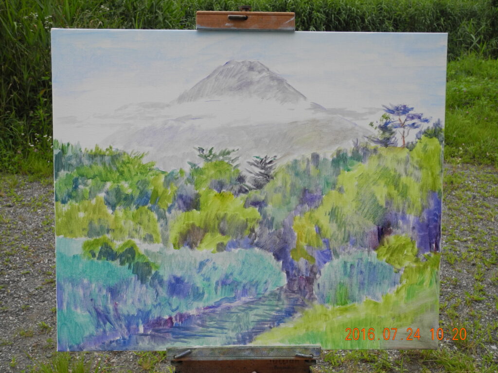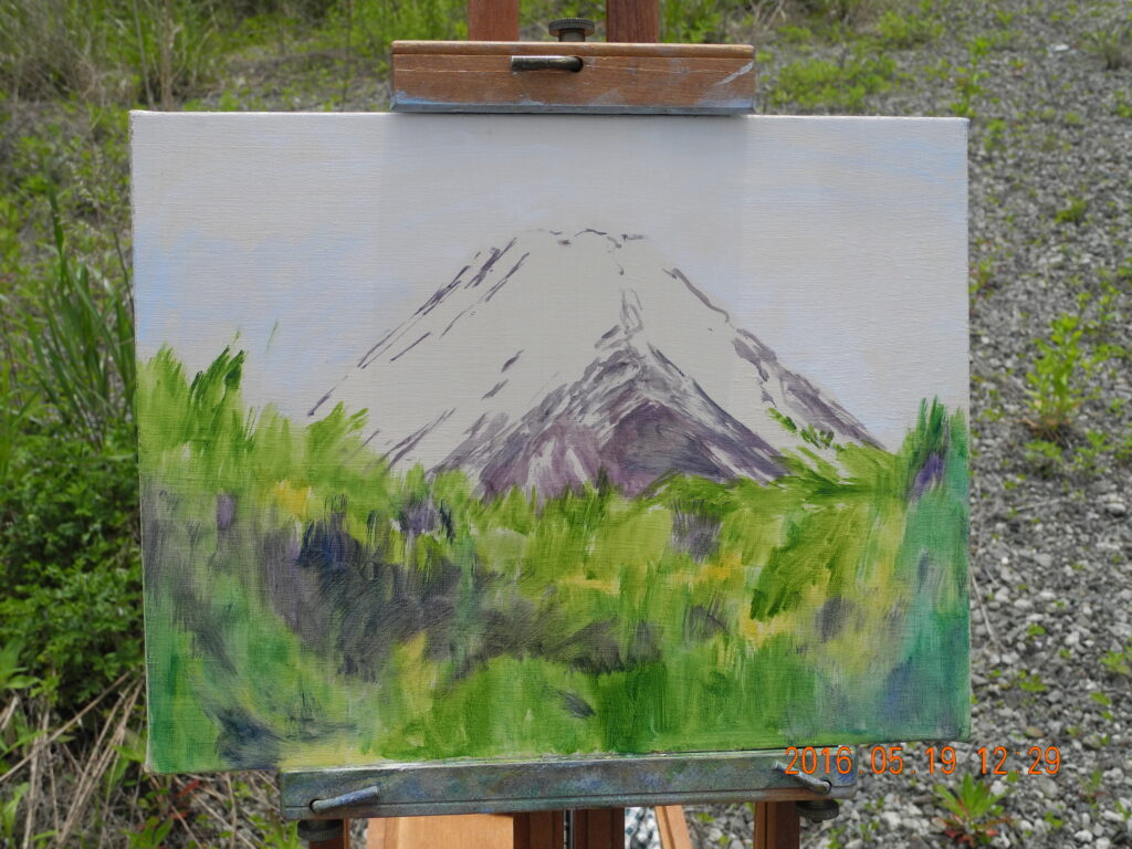 対象を描き尽くした、なんて思ったことを反省し、これからも謙虚にイーゼルを立てることを富士山に誓願した。
